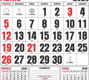 Importância e relevância A páscoa de 2026 representa, para milhões de famílias brasileiras, um momento de renovação religiosa, convivência familiar e também ...Calendário abril 2026 — dias, feriado e dicas de planejamento
