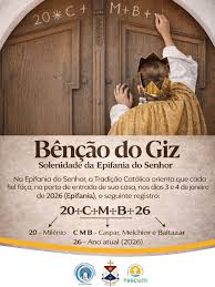 A benção do giz na Epifania, tradição católica quase centenária em algumas igrejas e que havia sido esquecida por décadas, voltou a ocupar as ruas e celebrações religiosas do Brasil em 2026. Na Solenidade da Epifania, católicos abençoam suas casas escrevendo as letras C, M e B, e os números do ano na parte de cima das portas. Este ano, os fiéis escrevem na porta: “20 + C + M + B + 26”, em referência a 2026 e à expressão “Cristo Abençoe esta Casa”, em latim “Christus Mansionem Benedicat”.