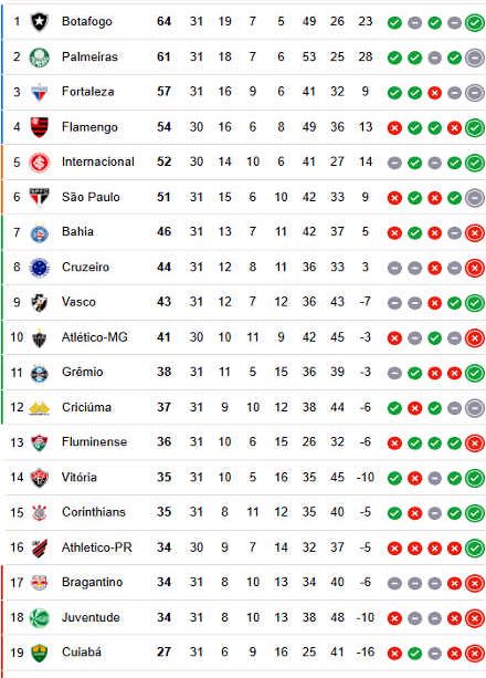 Os principais times que estão na parte inferior da tabela incluem **Ceará** e **Vasco da Gama**, que precisam urgentemente de vitórias para evitar o rebaixamento. Com apenas algumas rodadas até o final do campeonato, a tensão aumenta, e cada jogo se torna crucial, não só para os líderes, mas também para os times que brigam na parte inferior.