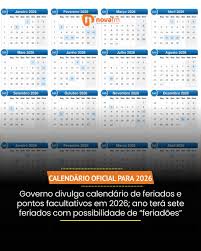 Feriados nacionais em 2026 – lista e dias da semana
