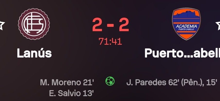 Durante a partida, o Lanús começou forte, pressionando o adversário e criando várias oportunidades de gol. O primeiro tempo terminou sem alterações no placar, mas deixou claro o domínio argentino em campo. No entanto, o Puerto Cabello se posicionou bem defensivamente e conseguiu neutralizar várias investidas. Na segunda metade, as coisas mudaram com uma jogada espetacular que resultou em um gol para o Lanús, o que aumentou a pressão sobre o time visitante.
