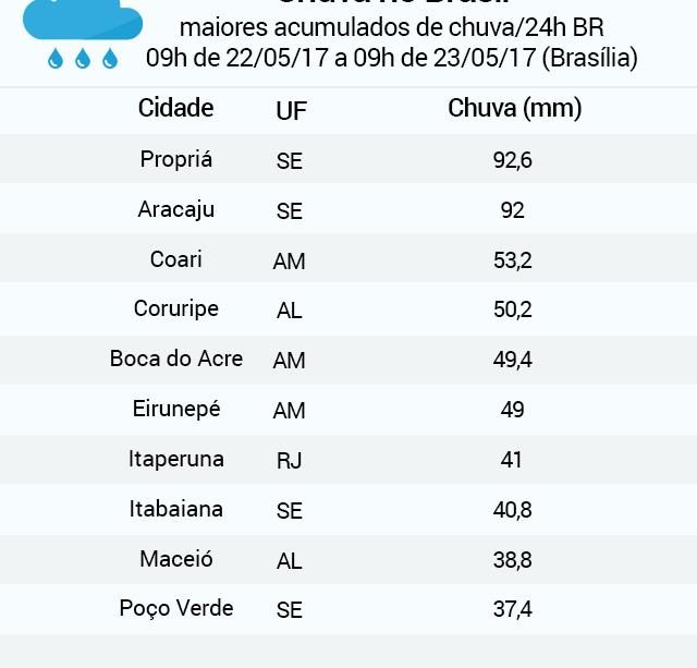 Até o dia 06/03, Aracaju registrou 29 mm de chuva em março de 2026, o que representa cerca de 35% da média mensal de 83 mm para o mês. Cenários regionais apontam ainda alertas para o Sudeste e Centro-Oeste com muita chuva nos próximos dias e aumento de condições de chuva em Roraima, fatores que podem influenciar padrões atmosféricos mais amplos.