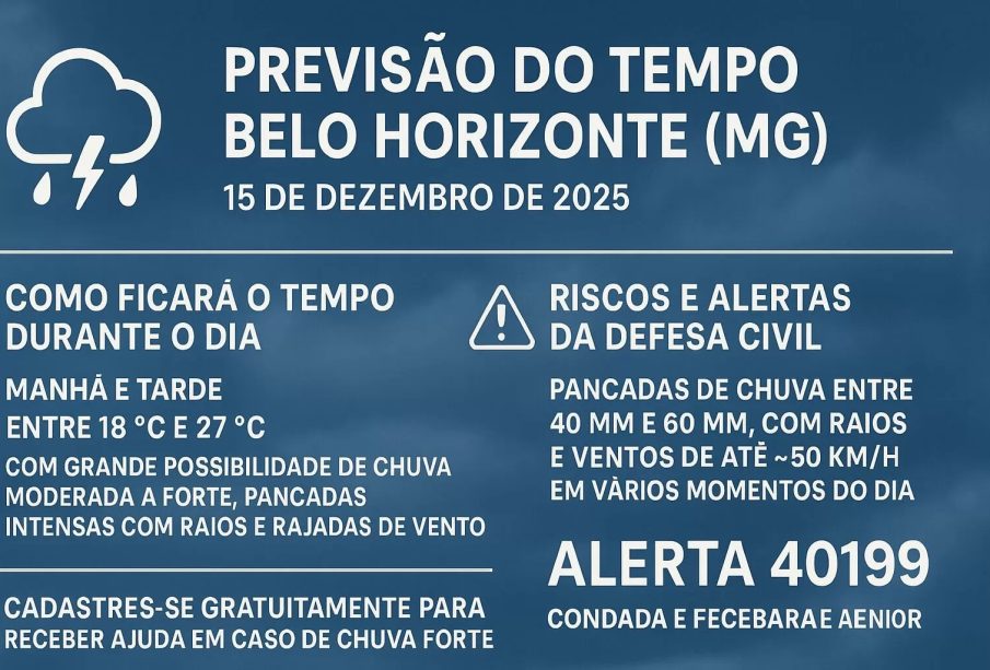 A previsão do tempo Belo Horizonte é essencial para moradores, gestores urbanos e quem planeja atividades ao ar livre. Com indicações de chuva volumosa, variações extremas de temperatura e períodos de vento forte, a informação meteorológica ajuda a reduzir riscos, preparar infraestrutura e orientar decisões diárias.