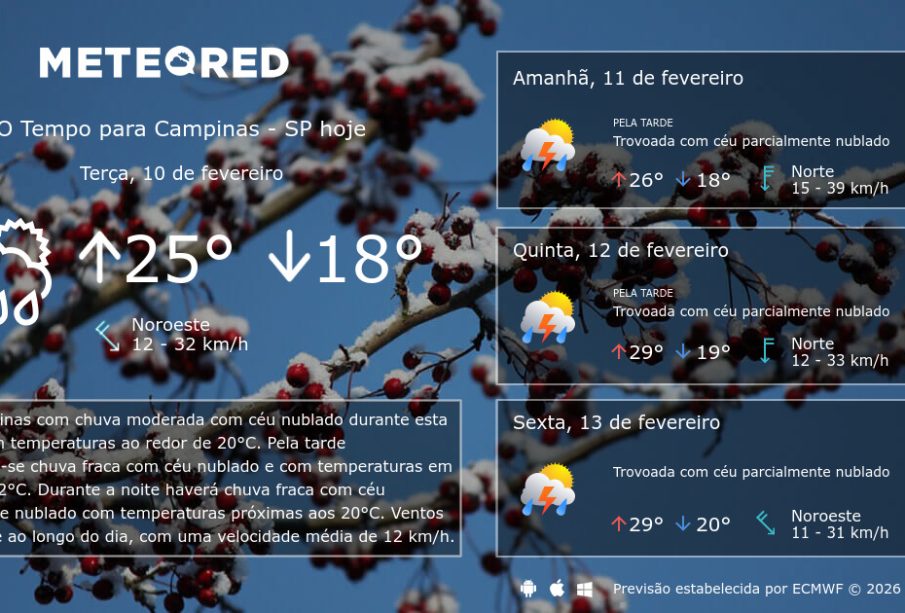 Moradores têm à disposição diferentes meios para obter a previsão do tempo Campinas: aplicativos de meteorologia, rádios locais, sites de notícias e alertas em redes sociais. Para decisões críticas — como viagens longas ou trabalho ao ar livre — vale consultar fontes com atualizações em curto prazo e alertas oficiais emitidos por serviços meteorológicos.