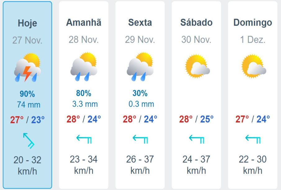Chuvas intensas podem provocar alagamentos em pontos críticos da cidade, queda de galhos e transtornos no transporte público. Em dias de alta umidade e calor, há maior sensação térmica que pode afetar idosos e crianças. Para atividades marítimas e praias, atenção a indicação de bandeiras e comunicados de guarda-vidas, já que mudanças repentinas no tempo afetam correntes e visibilidade.
