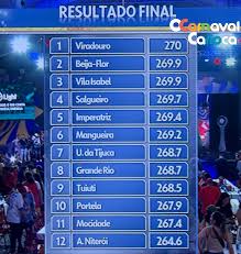 A classificação final determina premiações simbólicas e práticas, como acesso e rebaixamento entre grupos, visibilidade para patrocinadores e autonomia criativa para os enredos seguintes. Além disso, a repercussão do resultado afeta a agenda de eventos, contratos de shows e o calendário turístico do Rio.
