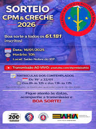 Ao todo, serão sorteadas 2.792 para as 16 unidades do CPM na Bahia (Ensino Médio e Ensino Fundamental) e 53 vagas para a creche na capital (Educação Infantil), totalizando 2.845 vagas. Atualmente, o sistema de ensino do CPM-BA atende cerca de 16 mil estudantes, distribuídos em 16 unidades no estado — sendo cinco em Salvador e 11 no interior da Bahia.