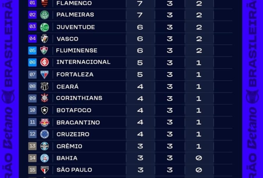 Tabela do Brasileirão 2025: Acompanhe o Campeonato Brasileiro